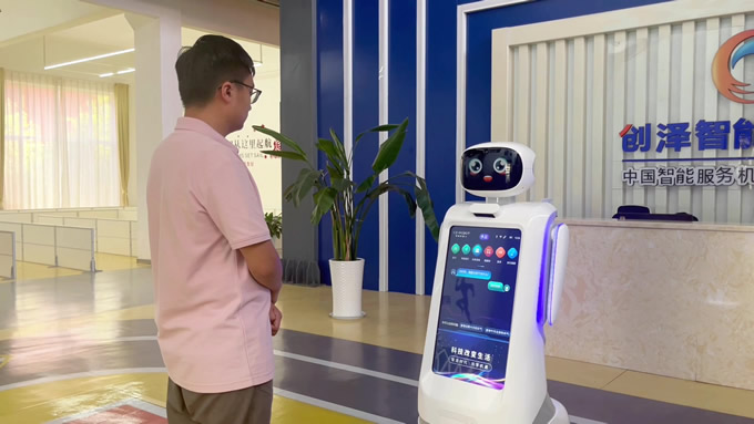 創(chuàng)澤智能消毒機器人和智能大屏機器人等多款機器人亮相蘭洽會,彰顯了創(chuàng)澤AI技術實力與場景深耕能力