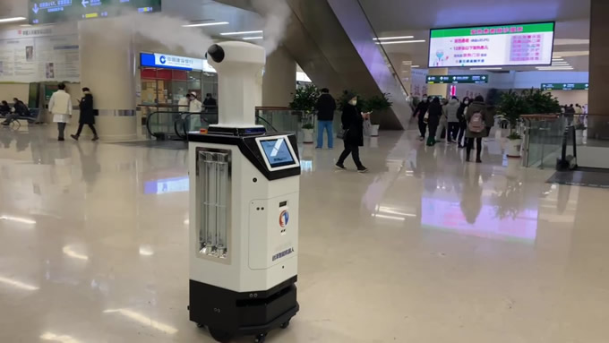 消毒機器人什么場合作用大,大型公共場所使用消毒機器人進行消毒