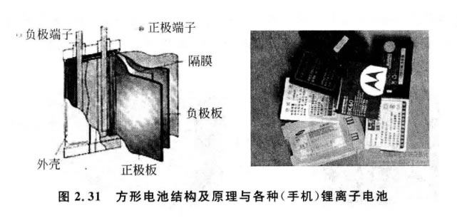 鋰電池是指電化學(xué)體系中含有鋰(包括金屬鋰、鋰合金、鋰離子、鋰聚合物),由鋰金 屬或鋰合金為負(fù)極材料、使用非水電解質(zhì)溶液的電池。鋰電池大致分為鋰金屬電池和鋰 離子電池兩類。鋰金屬電池內(nèi)含金屬態(tài)鋰,它通常是不可充電的。鋰離子電池不含有金 屬態(tài)鋰,它可以充電。Z早出現(xiàn)的鋰電池來自于偉大的發(fā)明家愛迪生,他使用了反應(yīng) Li+MnO₂=LiMnO₂ 。 該反應(yīng)為氧化還原反應(yīng)和放電。由于鋰金屬的化學(xué)特性非常活 潑,使得鋰金屬的加工和保存及使用對環(huán)境要求非常高,所以鋰電池長期沒有得到廣泛 應(yīng)用。但是,鋰電池現(xiàn)在已經(jīng)成為了主流,如圖2.31所示。鋰離子電池中因為不含有重 金屬鎘,與鎳鎘電池相比較,它可以大大減少對環(huán)境的污染。