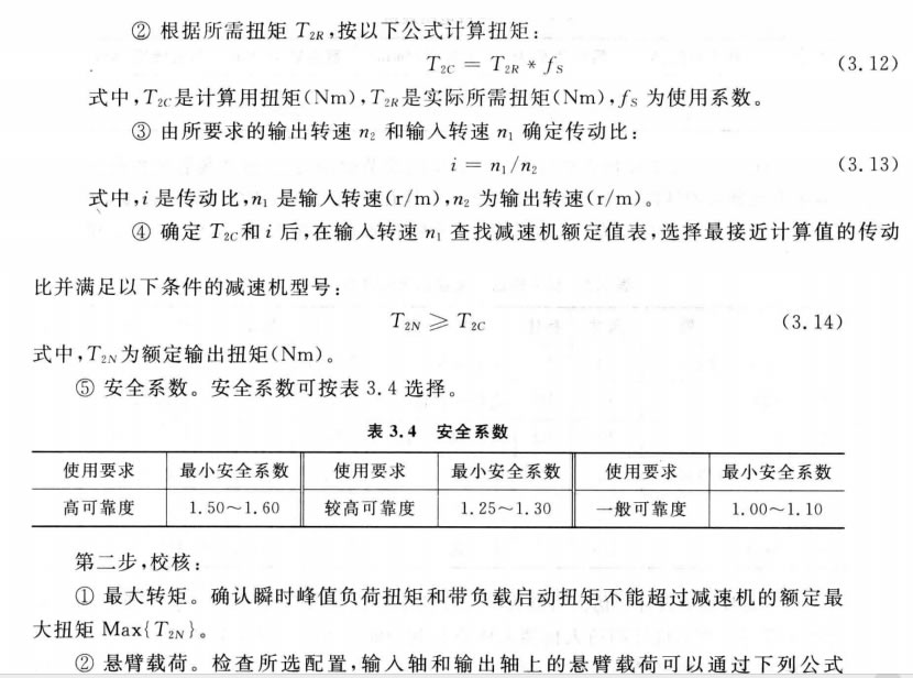 (4)精密行星減速機選型及其問題。選用精密行星減速機應(yīng)考慮其結(jié)構(gòu)類型、安裝 形式、承載能力、輸出轉(zhuǎn)速、工作條件等因素。減速機的承載能力是在額定轉(zhuǎn)速下,每天 工作10小時和啟動數(shù)少于10time/h 及平穩(wěn)無沖擊的條件下得出的,所以應(yīng)按以下步驟 進行選型[97]。