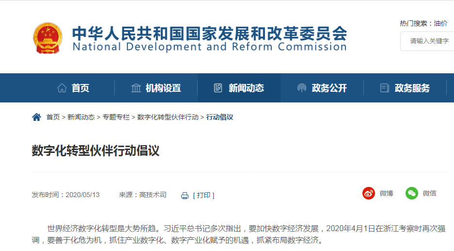 世界經(jīng)濟數(shù)字化轉型是大勢所趨。總書記多次指出,要加快數(shù)字經(jīng)濟發(fā)展,2020年4月1日在浙江考察時再次強調,要善于化危為機,抓住產(chǎn)業(yè)數(shù)字化、數(shù)字產(chǎn)業(yè)化賦予的機遇,抓緊布局數(shù)字經(jīng)濟。