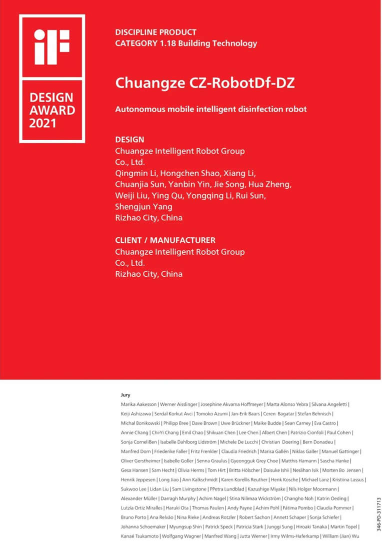 “好的設計賦予產品靈魂”。今年iF設計獎共有來自52個國家的近10000件作品參賽,評選過程競爭十分激烈,入選2021年iF設計獎的移動式消毒機器人企業共有兩家:中國的創澤集團和丹麥的Blue Ocean Robotics。創澤集團榮獲此次獎項表明其創新產品設計和品質獲得了國際認可,也是對創澤集團AI應用創新引L力的肯定。 未來,創澤集團將繼續深耕探索,以前瞻設計理念、出色產品引L行業發展!