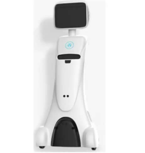 輪式移動機器人,具有自主移動及自主避障功能,可以 為患者提供醫療看護、遠程監控、遞送物品、互動娛樂等服務。