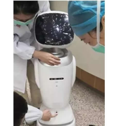 輪式移動機器人,可在無接觸情況下查看病人電子病歷,調取檢查報告;同時具有安撫病患情緒、心理疏導等功能。